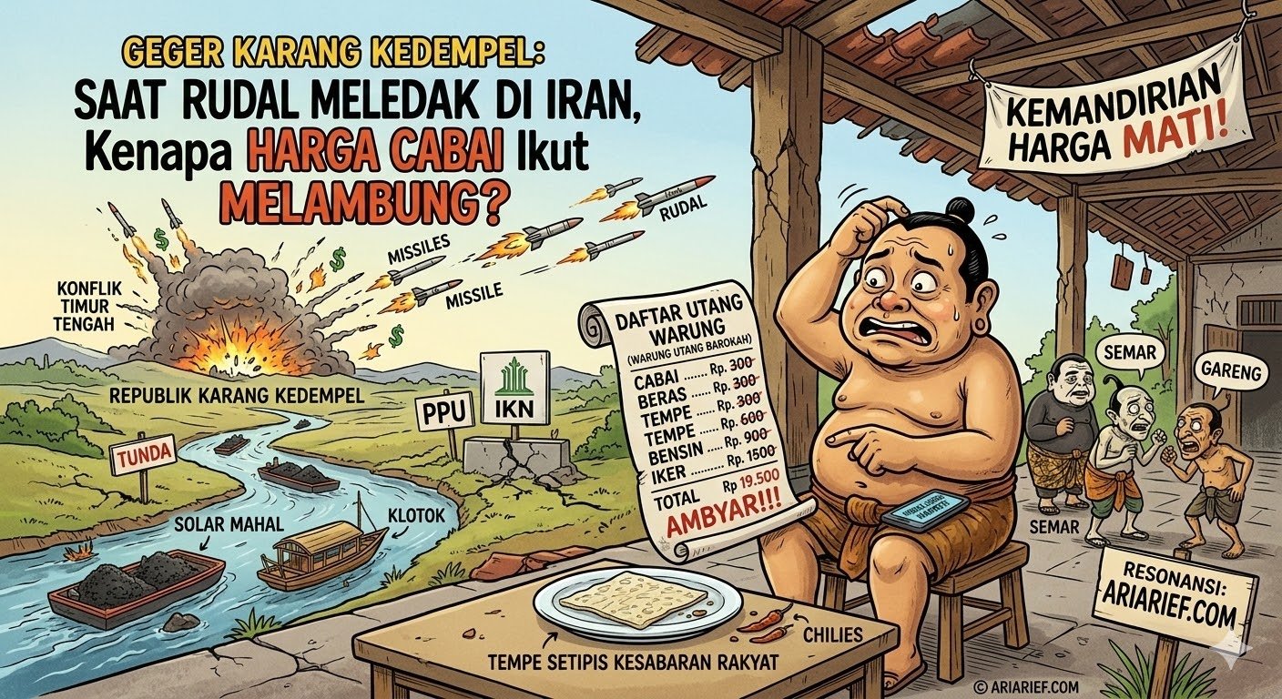 “Gong, coba cek. Itu rudal terbang di Iran, kenapa harga cabai di pasar Karang Kedempel malah ikut melambung?” tanya Gareng sambil memijat pelipis.